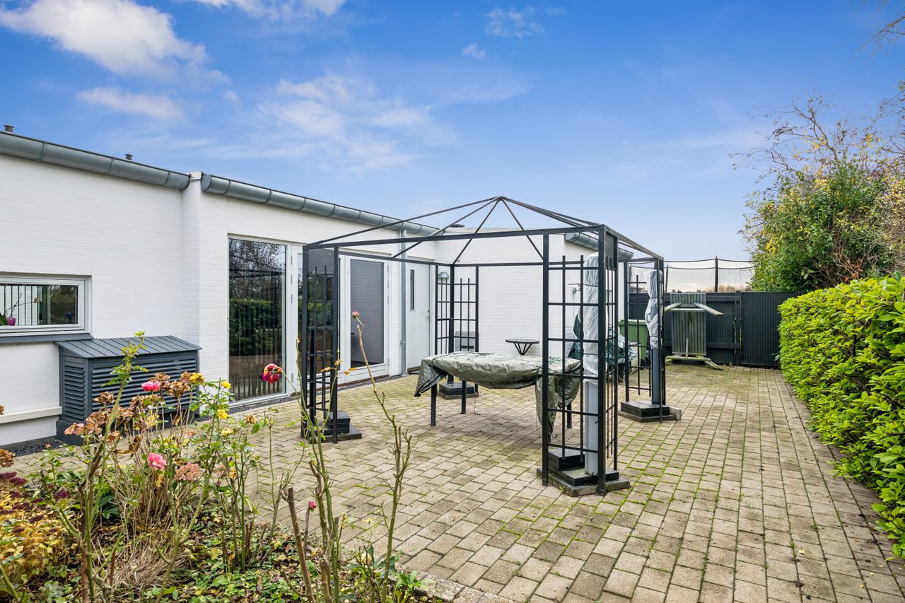 Udenfor finder du et hyggeligt gårdmiljø samt et stort udhus på 12 kvadratmeter – ideelt til opbevaring eller hobbyprojekter. Beliggende i et roligt kvarter får du her de bedste betingelser for afslapning samtidig med at du har gode busforbindelser lige ved hånden samt kort afstand til indkøbsmuligheder. Området byder desuden på et rigt foreningsliv, så her er noget for enhver smag.
